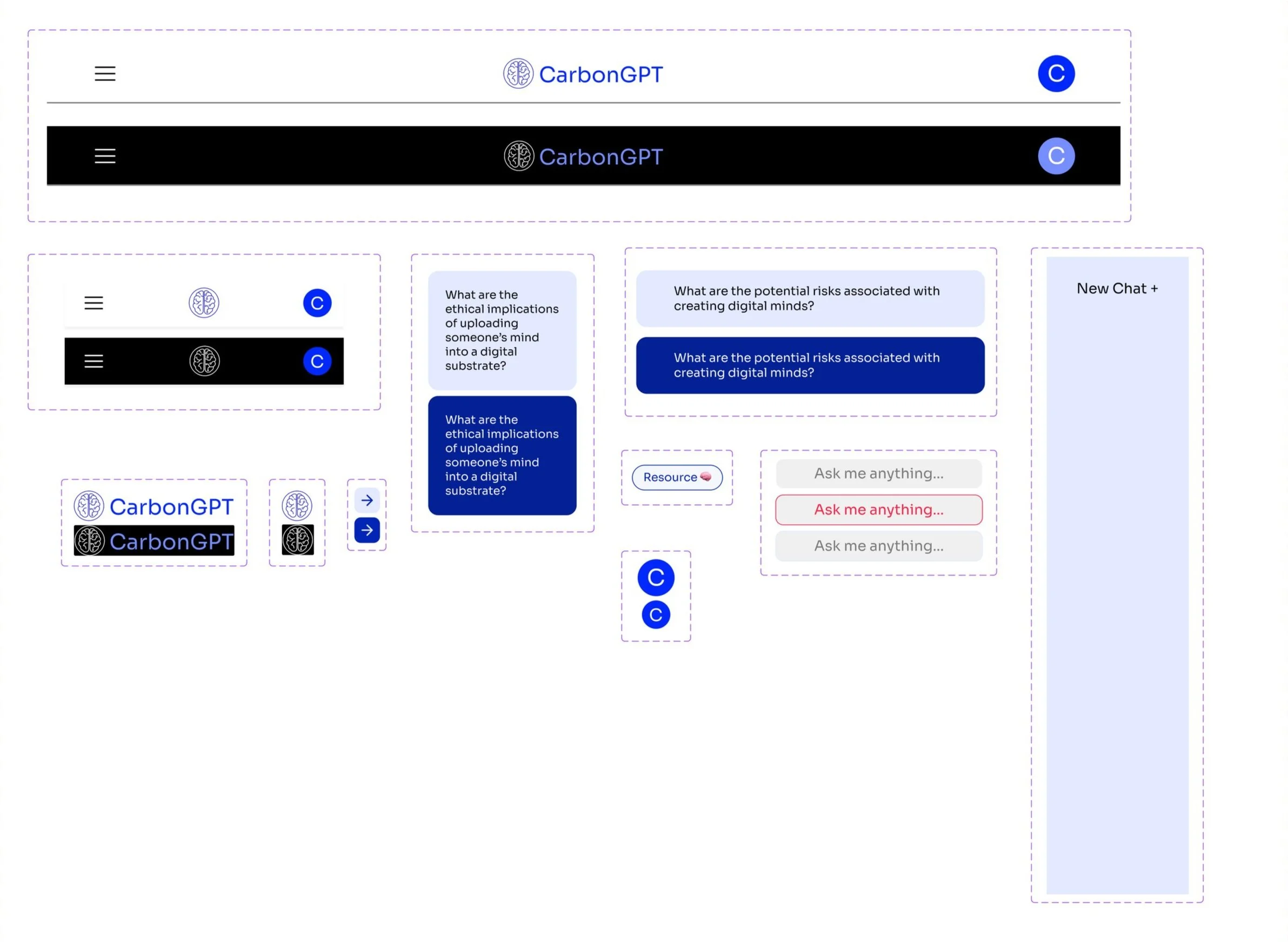 We developed a Minimum Viable Product for CarbonGPT. To foster brand recognition and ensure a cohesive user experience, we established a brand identity for CarbonGPT that aligns with Carboncopies' existing logo and website. This visual consistency streamlines user interaction and reinforces brand identity.